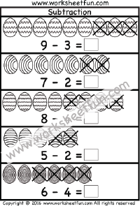 Easter Subtraction Worksheet – Easter Eggs – Picture Subtraction Worksheets -Kindergarten Subtraction Worksheet