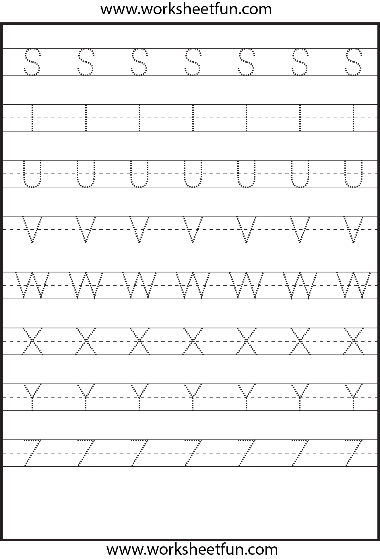 Tracing – Uppercase Letters – Capital Letters – Worksheet S-Z – Download
